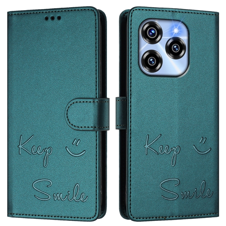 Funda de Cuero Rfid para Teléfono Oukitel C50 con Relieve Sonriente (Verde Pavo Real)