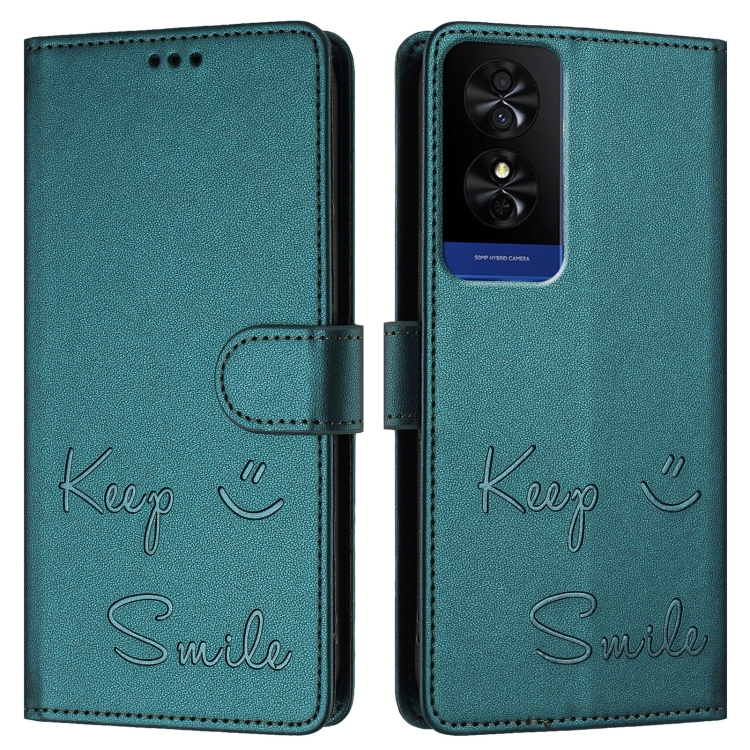 Funda de Cuero Rfid con Relieve Sonriente para TCL 50 5G (Verde Pavo Real)
