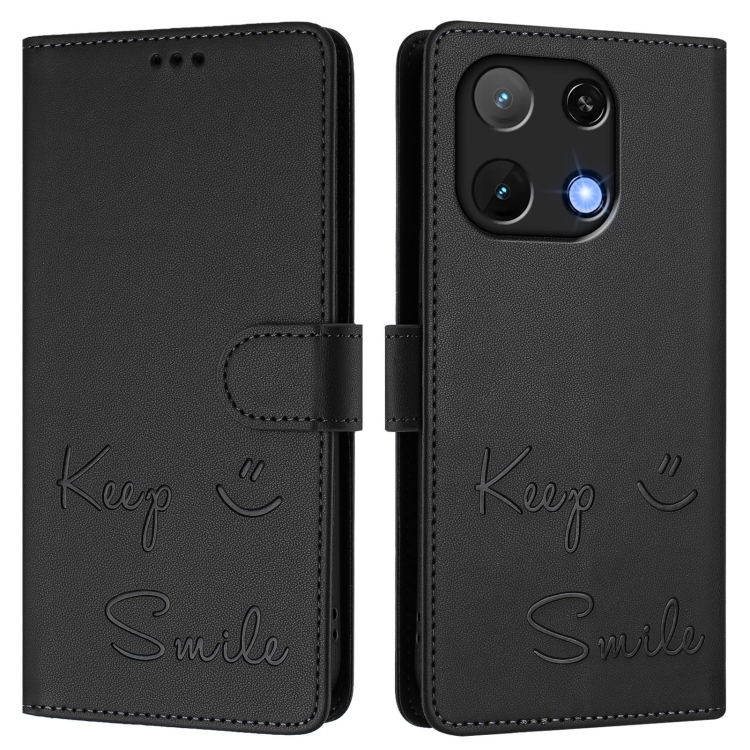 Funda de Cuero Rfid para Teléfono Umidigi Note 90 con Relieve Sonriente (Negra)