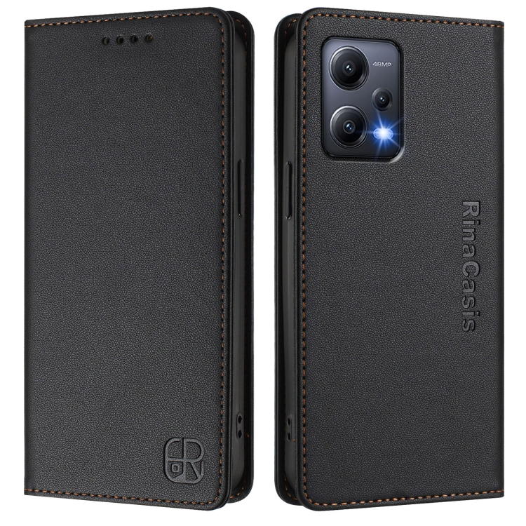Funda de Cuero Rfid con Succión Magnética y Doble Pliegue para Redmi Note 12 5G India/Xiaomi Poco X5 Rc01 (Negra)