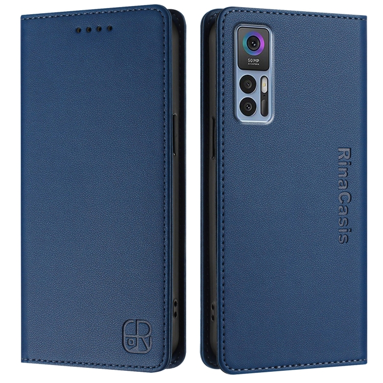 Funda de Cuero Rfid con Succión Magnética y Doble Pliegue para TCL 30 4G/30 5G/30+ Rc01 (Azul Oscuro)