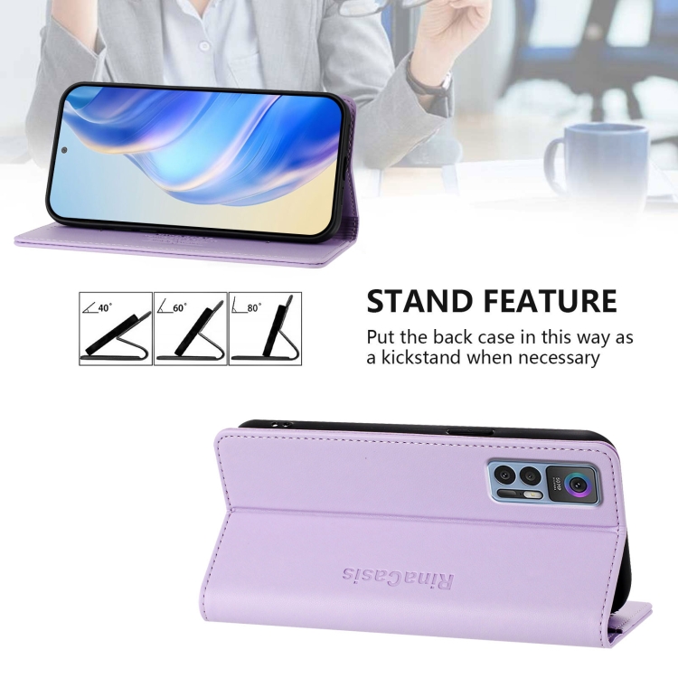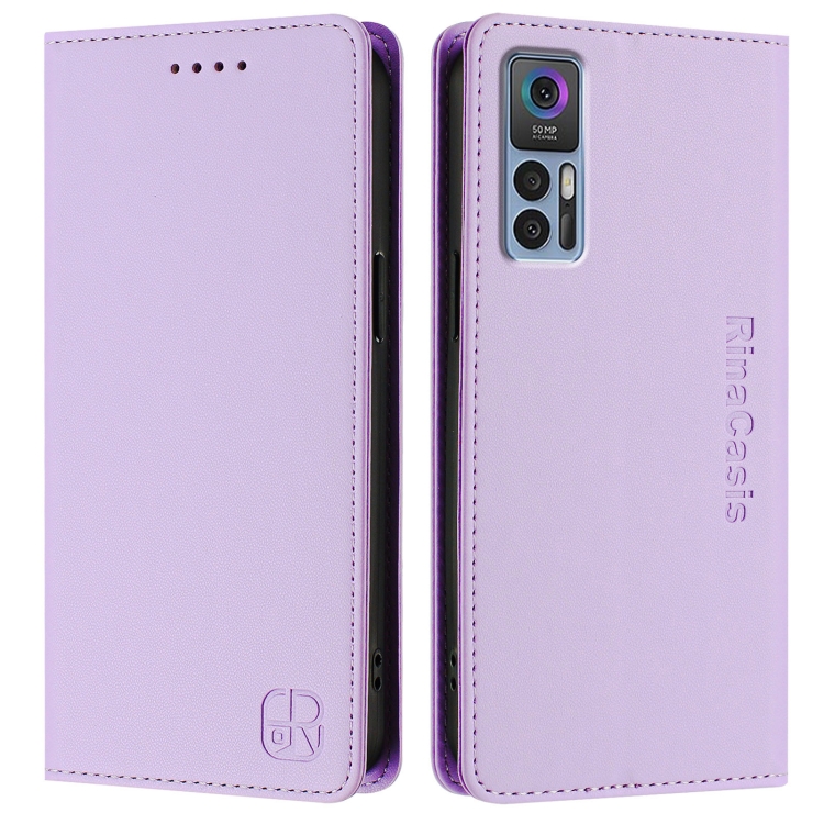 Funda de Cuero Rfid para TCL 30 4G 5G 30+ Rc01 con Succión Magnética y Doble Pliegue (Morado Claro)