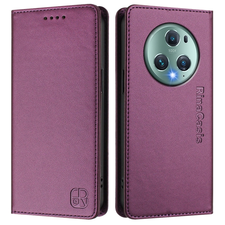 Funda de Cuero Rfid con Doble Pliegue y Succión Magnética para Honor Magic5 Pro Rc01 (Violeta)