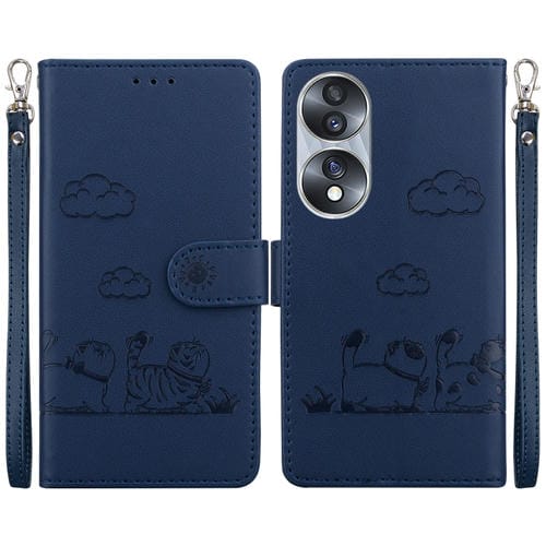 Funda de Cuero Rfid para Honor 70 con Diseño de Gatos (Azul)