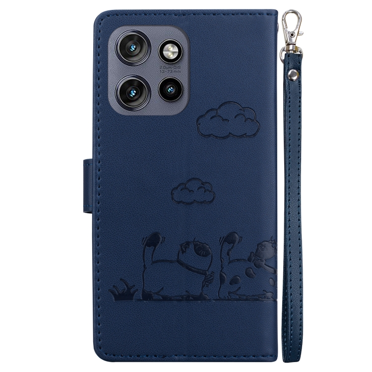 Funda de Cuero RFID para Motorola Edge 50 Neo 5G con Diseño de Gatos (Azul)
