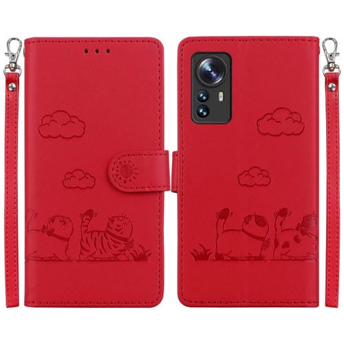 Funda de Cuero Rfid con Diseño de Gatos para Xiaomi 12/12X (Roja)
