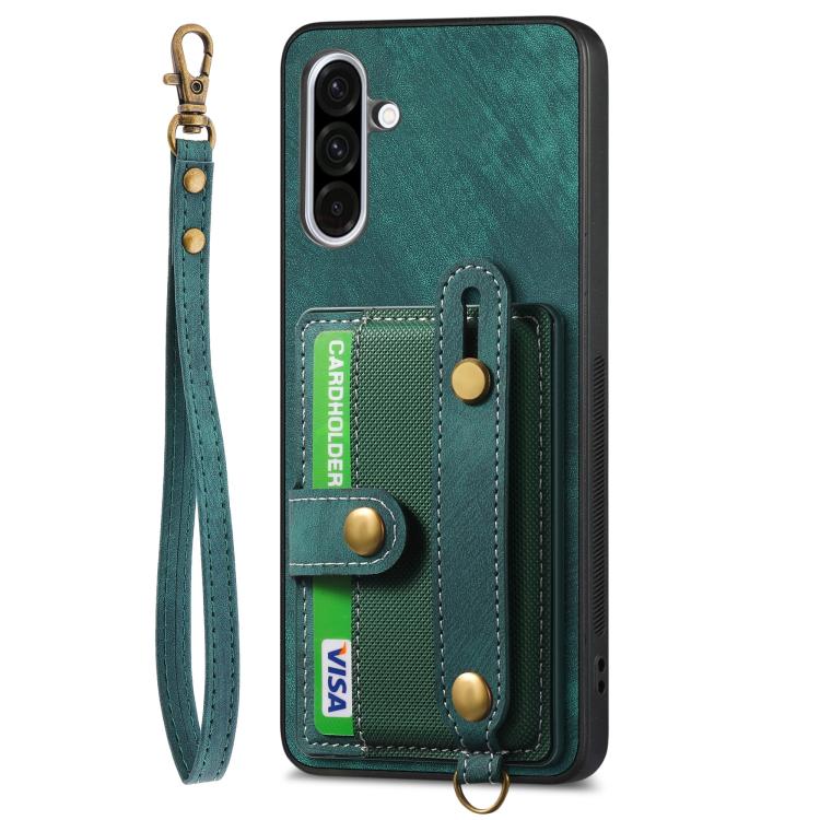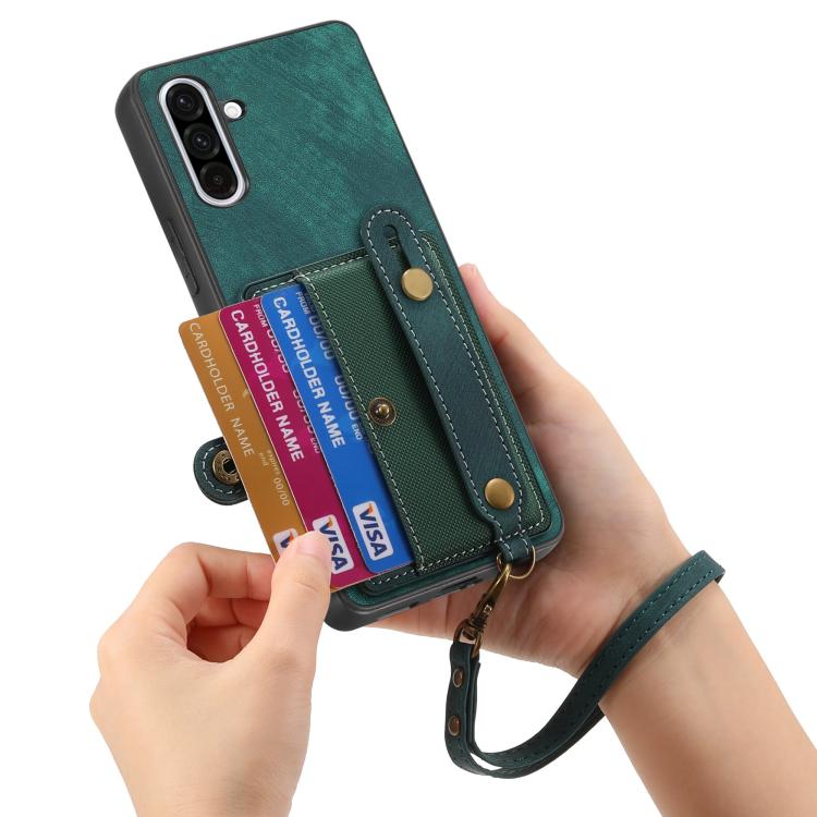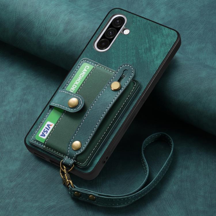 Funda de Cuero Tipo Billetera con Correa Cruzada para Samsung Galaxy A36 (Verde)