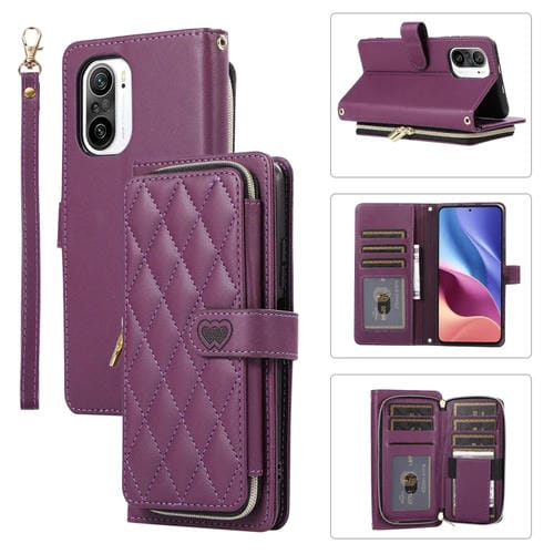 Funda de Cuero Tipo Billetera con Cremallera Completa y Diseño Rombal para Xiaomi Poco F3 (Morado Oscuro)