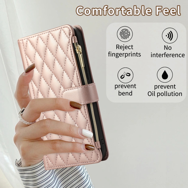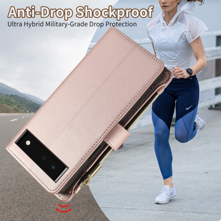 Funda de Cuero Tipo Billetera con Cremallera Rombal para Google Pixel 6 (Oro Rosa)