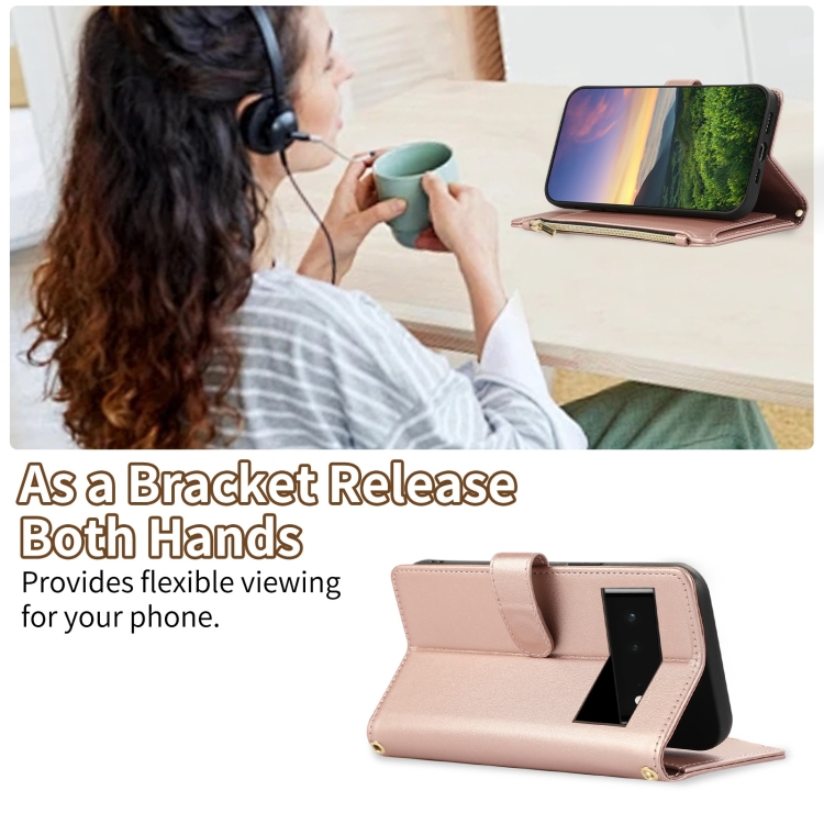 5. Función de billetera para múltiples tarjetas: múltiples ranuras para tarjetas y bolsillos con cremallera para billetera, los compartimentos para efectivo pueden almacenar sus tarjetas de crédito y pequeños billetes diarios.