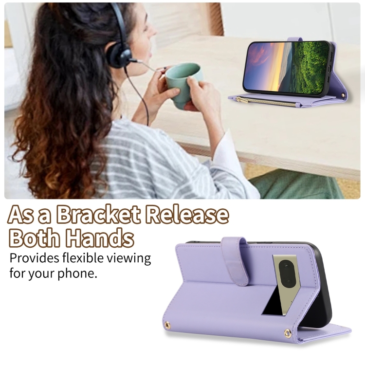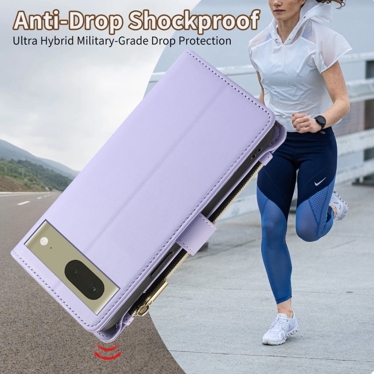 Funda de Cuero Tipo Billetera con Cremallera Rombal para Google Pixel 7 (Morado)