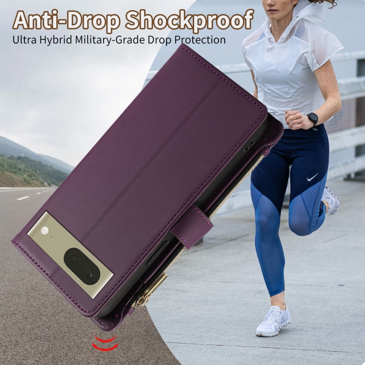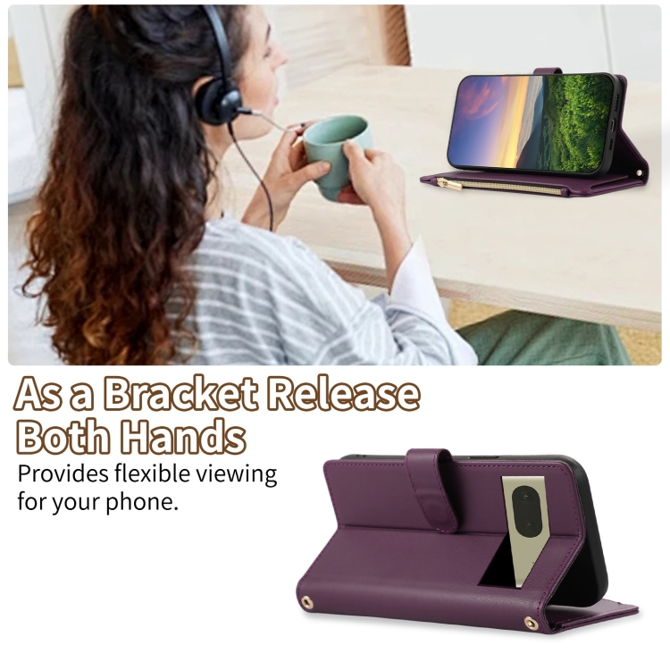 Funda Cuero Tipo Billetera con Cremallera Rombal para Google Pixel 7 (Morado Oscuro)