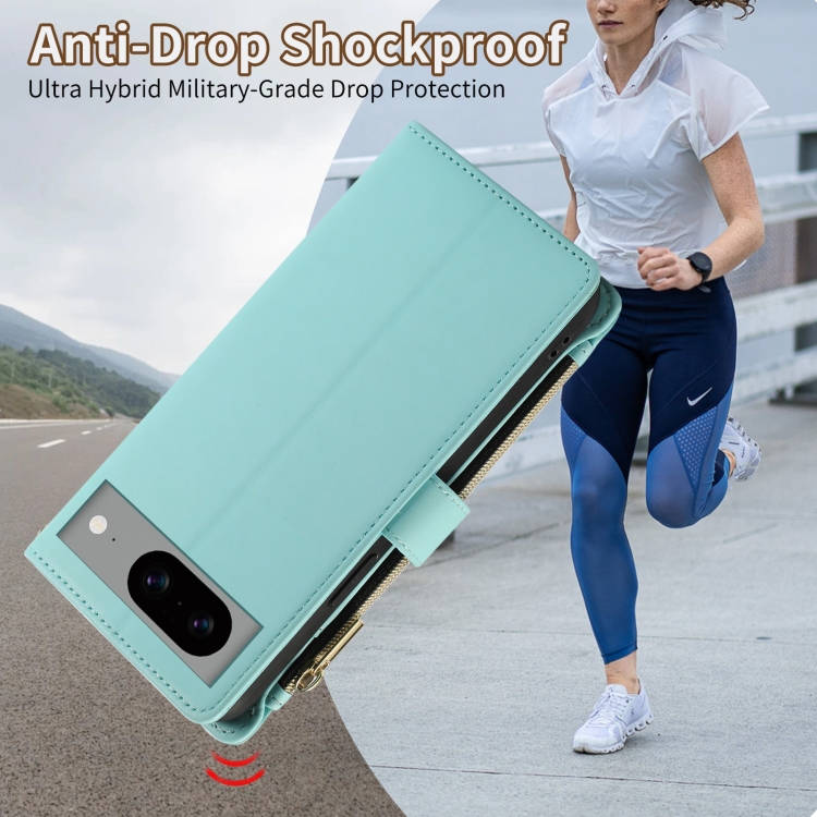 Funda de Cuero Tipo Billetera con Cremallera Rombal para Google Pixel 8 (Cian)