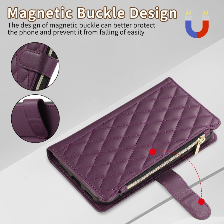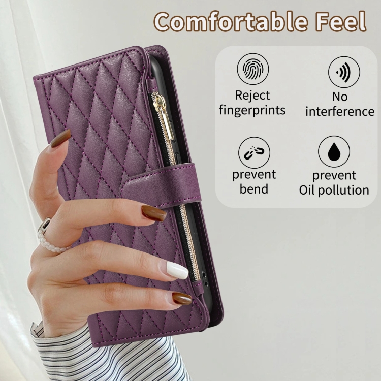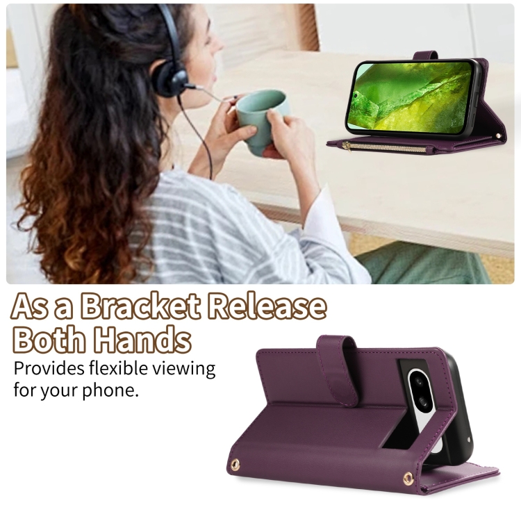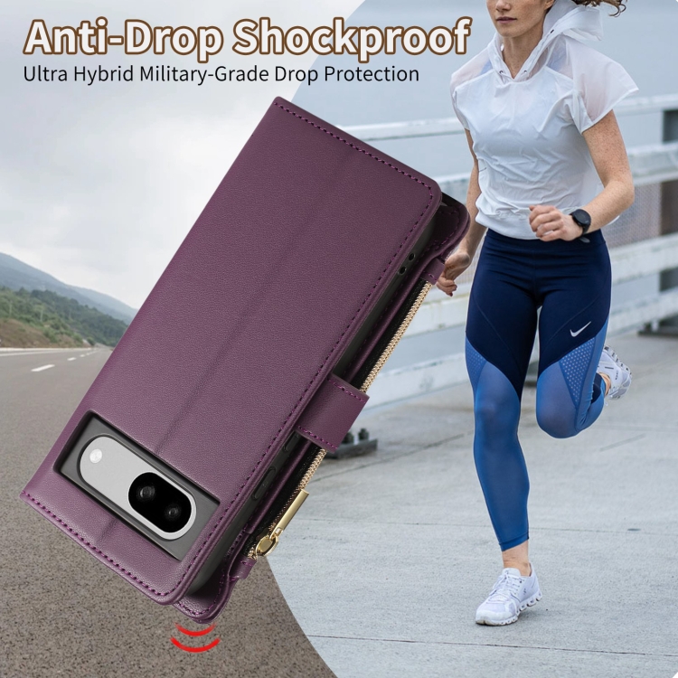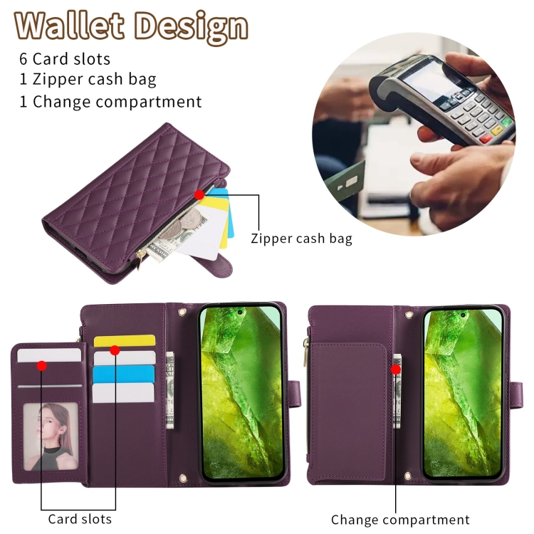 Funda de Cuero Tipo Billetera con Cremallera Rombal para Google Pixel 8A (Morado Oscuro)