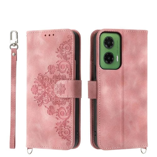 Funda de Cuero Tipo Billetera para Motorola Moto G35 con Diseño Flores en Relieve (Rosa)