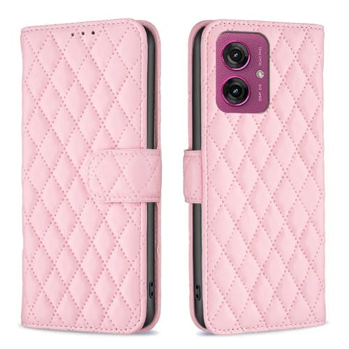Funda de Cuero Tipo Billetera Motorola Moto G55 con Tapa y Diseño Celosía (Rosa)