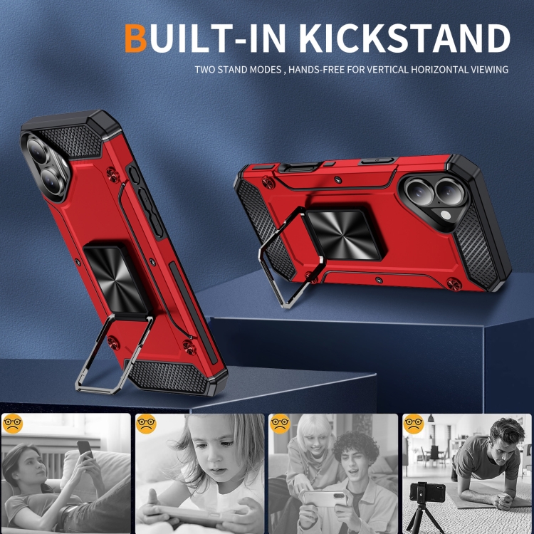 Funda Metal para iPhone 16 Plus a Prueba de Golpes (Roja)