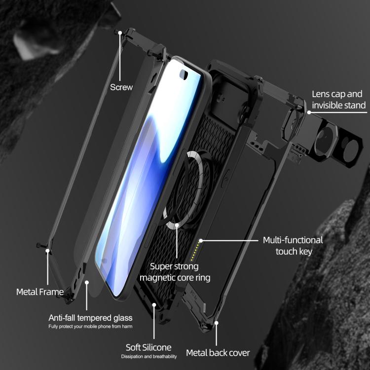 Funda de metal con soporte para lente de iPhone Air, resistente al agua IP54, con triple protección MagSafe (negra)