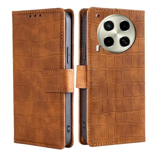 Funda de Piel para Tecno Camon 30 con Cierre Magnético y Diseño de Cocodrilo (Marrón)