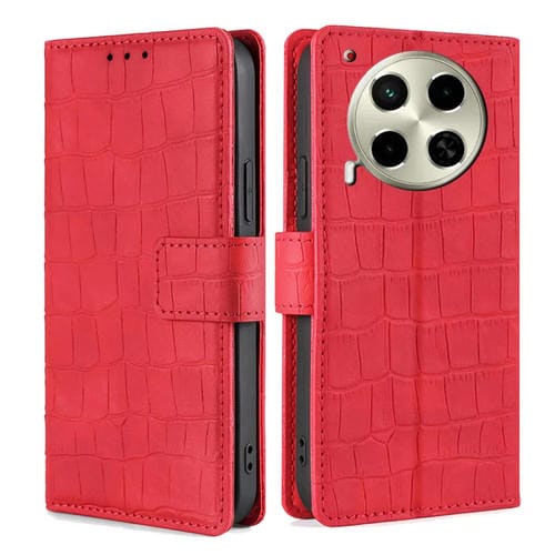 Funda de Piel con Cierre Magnético para Tecno Camon 30 (Rojo) Diseño Cocodrilo