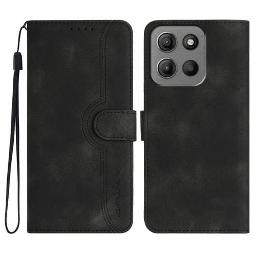Funda de Piel Motorola Moto G15 con Diseño de Corazón (Negra)