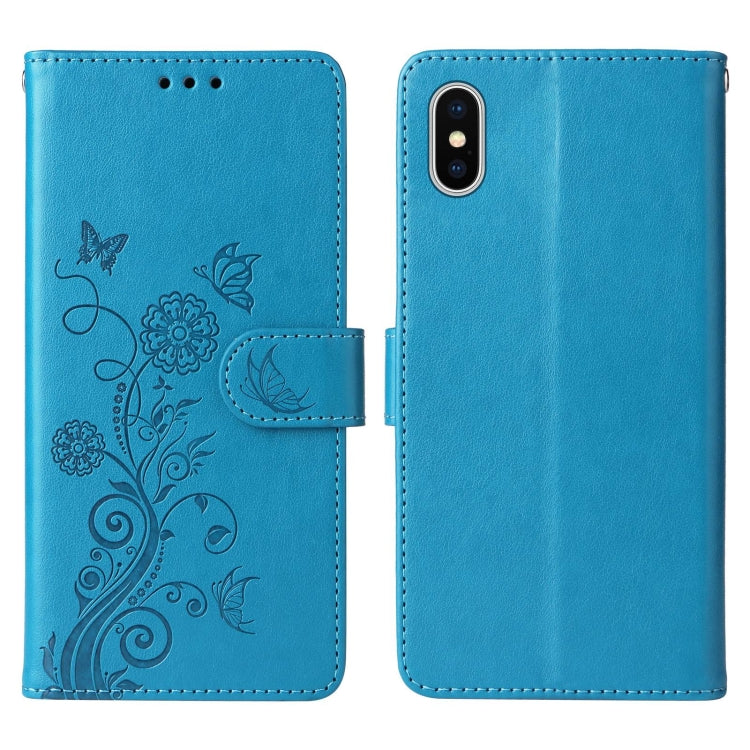 Funda de Piel iPhone Xs Max Diseño Mariposas y Flores En Relieve (Azul)