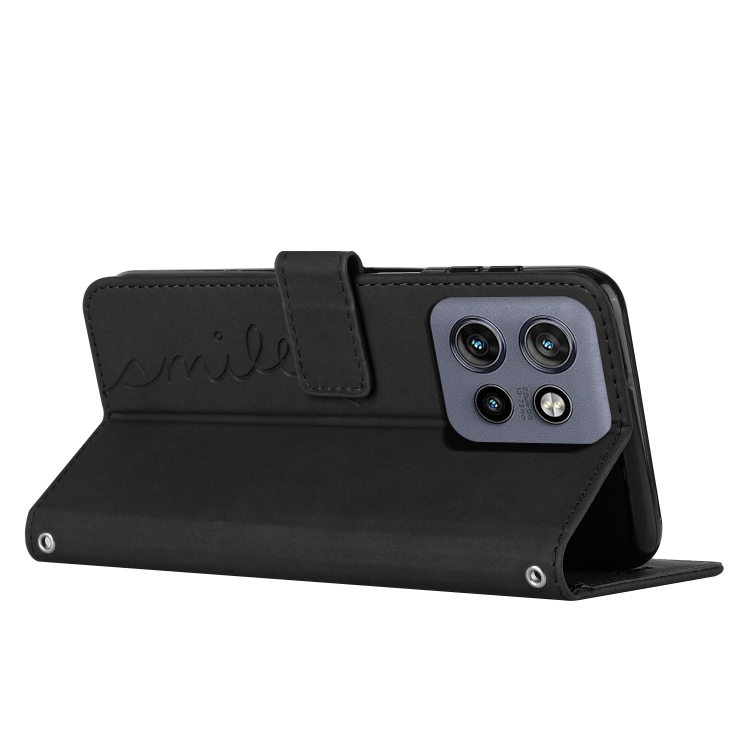Funda de Piel con Relieve de Corazón para Motorola Edge 50 Neo con Cordón Largo (Negro)