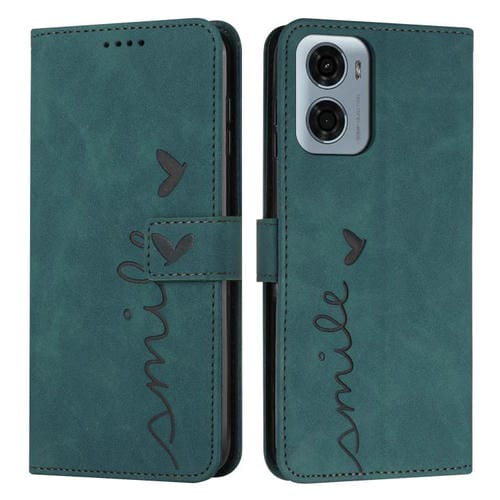 Funda de Piel con Relieve de Corazón para Motorola Moto G05 con Cordón Largo (Verde)
