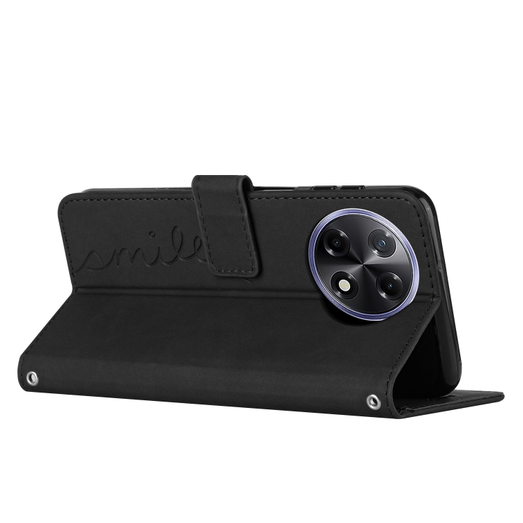 Funda de Piel con Relieve de Corazón para Tecno Camon 30S con Cordón Largo (Negro)
