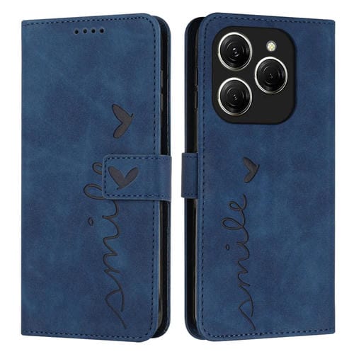 Funda de Piel con Relieve de Corazón para Tecno Spark 20 Pro 5G (Azul)