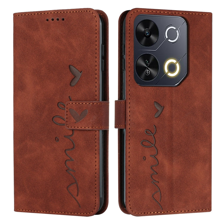 Funda de Piel con Relieve de Corazón y Cordón Largo para Teléfono Itel P65 (Marrón)