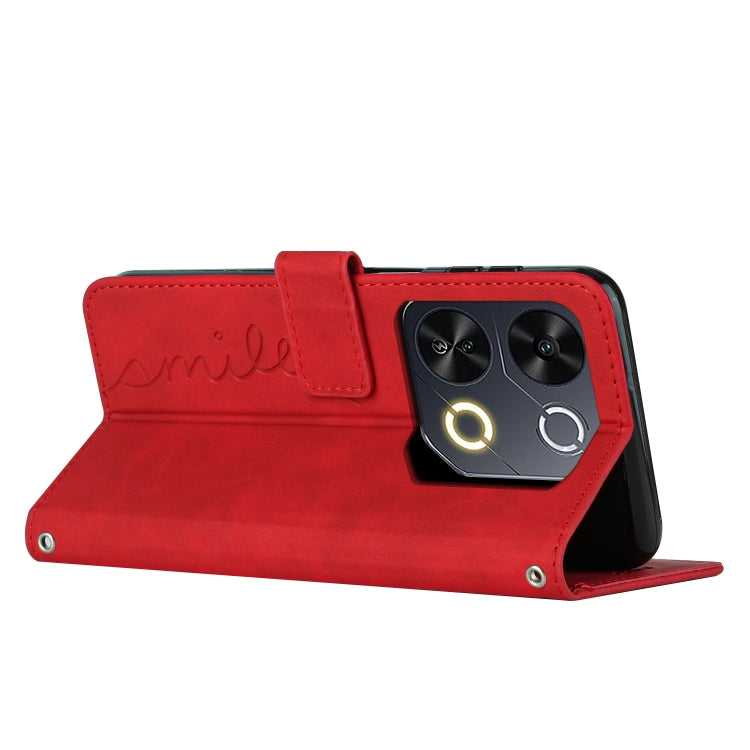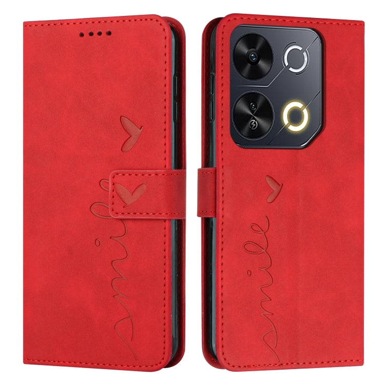 Funda de Piel con Relieve de Corazón y Cordón Largo para Teléfono Itel P65 (Rojo)