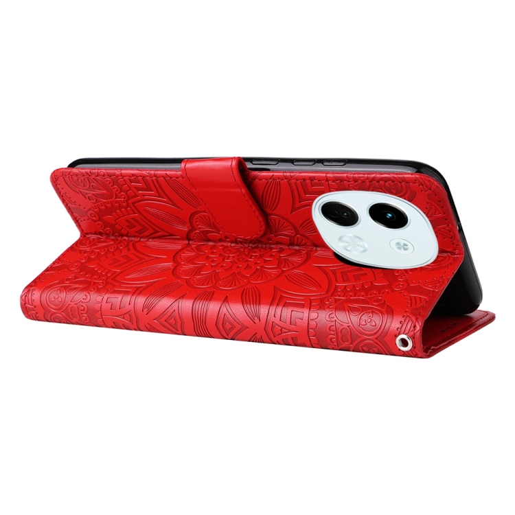 Funda de Piel con Relieve de Girasol para Tecno Spark 30 5G y Pova 6 Neo 5G (Roja)