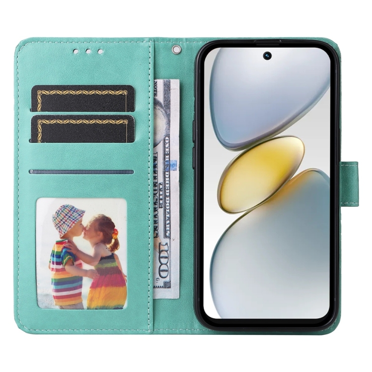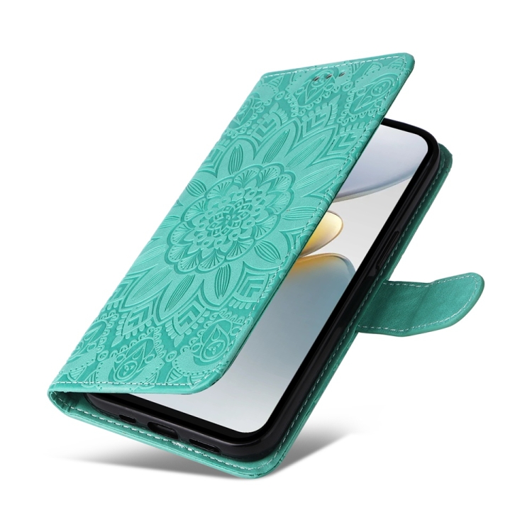 Funda de Piel con Relieve de Girasol para Tecno Spark Go 1 / Pop 9 / Spark Go 2025 (Verde)