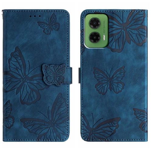 Funda de Piel con Relieve de Mariposa para Motorola Moto G35 (Azul)