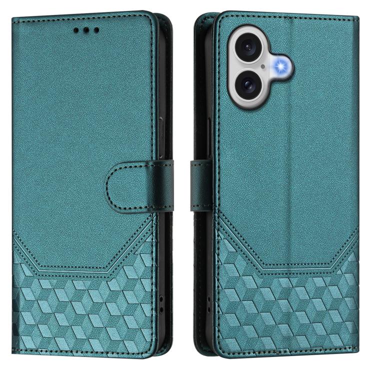 Funda de piel con relieve de panal RFID para iPhone 17 (verde pavo real)