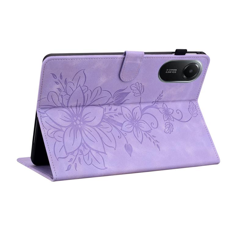 Funda de piel con relieve Lily para Redmi Pad 2 / Redmi Pad SE 11 2025 (morada)