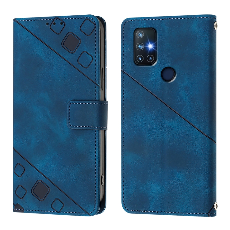 Funda de Piel con Relieve para OnePlus Nord N10 5G (Azul)