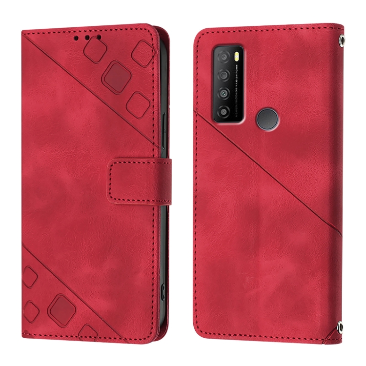 Funda de Piel con Relieve para Teléfono TCL 30 XL T701DL (Roja)