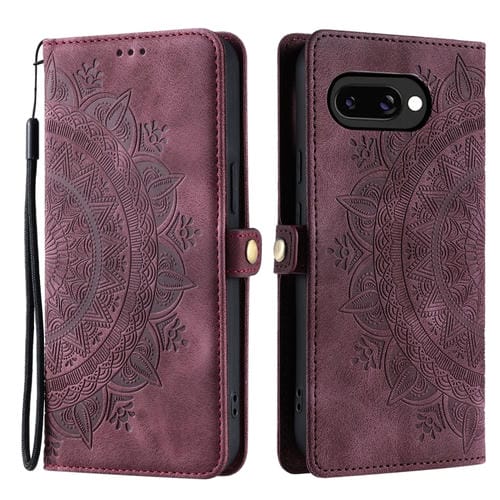 Funda de Piel con Relieve Totem para Google Pixel 9A (Rojo Vino)
