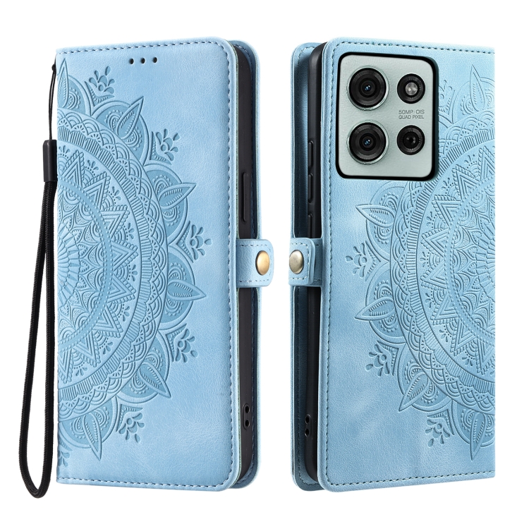 Funda de Piel con Relieve Totem para Motorola Moto G75 5G (Azul)