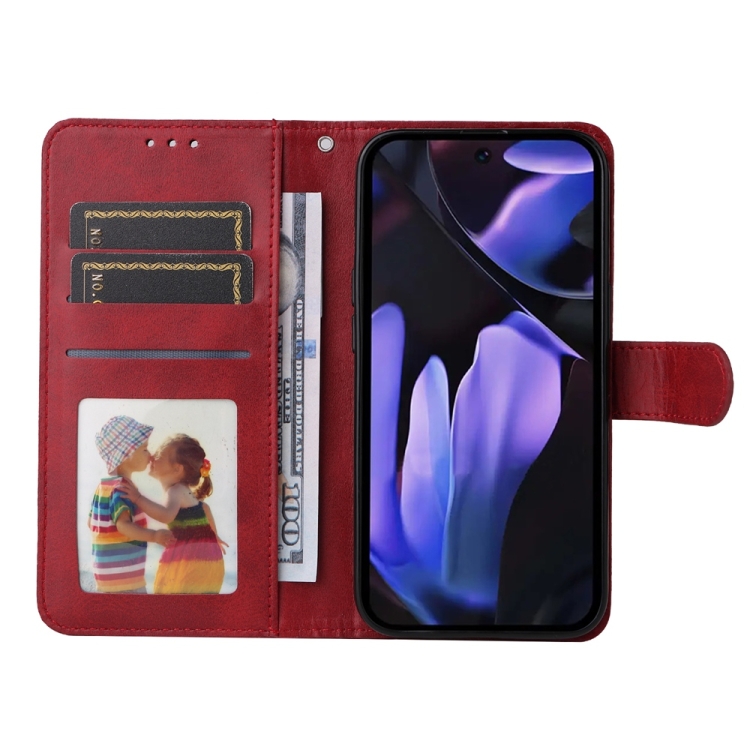 Funda de Piel con Tapa y Textura Clásica de Becerro para Google Pixel 9A (Rojo)
