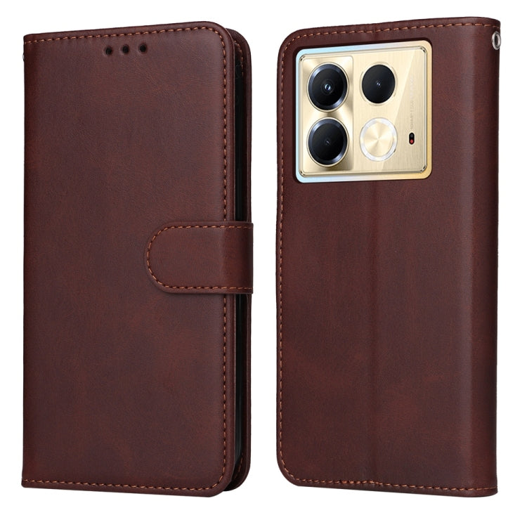 Funda de Piel con Tapa y Textura Clásica de Becerro para Infinix Note 40 5G (Marrón)
