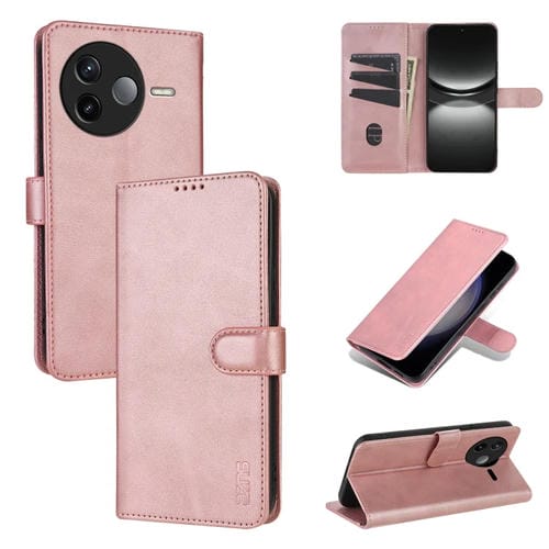 Funda de Piel con Tapa y Textura de Piel de Becerro para Redmi K80 Azns (Oro Rosa)