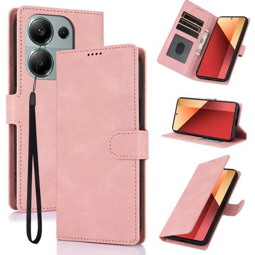 Funda de Piel de Becerro con Textura de Piel de Becerro con Diseño de Fantasía Global para Redmi Note 13 4G (Rosa)