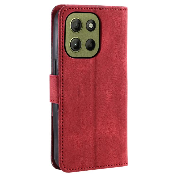 Funda de Piel de Becerro para Motorola Moto G15 (Rojo) con Costuras Tacto Piel de Uña