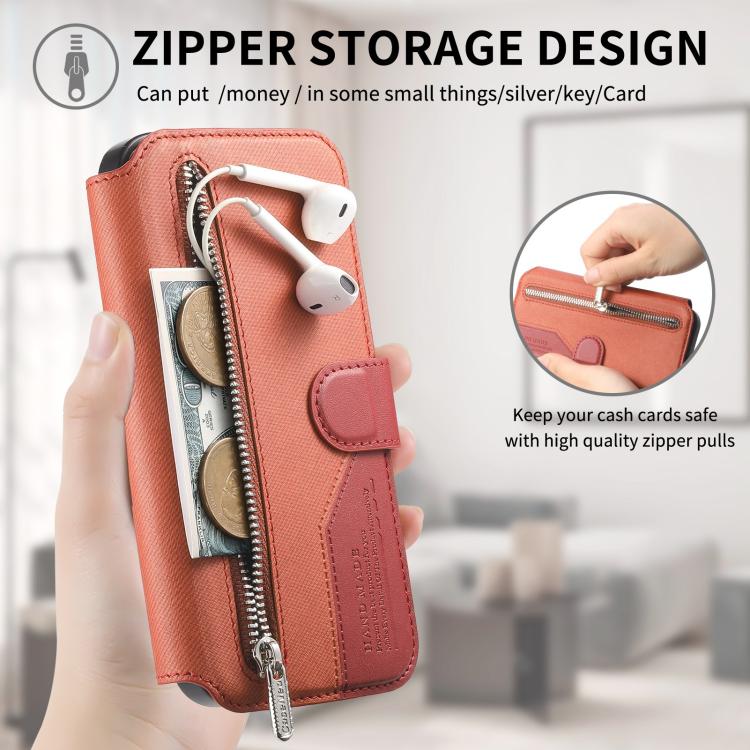 2. Cartera con cremallera: La funda de piel cuenta con una cartera con cremallera y ranuras para tarjetas, ideales para guardar tarjetas y algo de efectivo.