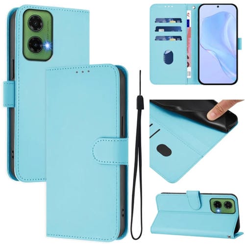 Funda de Piel Sintética con Cordón para Motorola Moto G35 (Azul Cielo)