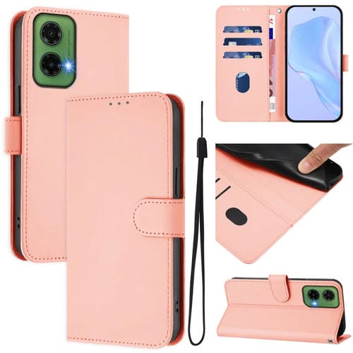 Funda de Piel Sintética con Cordón para Motorola Moto G35 (Rosa)