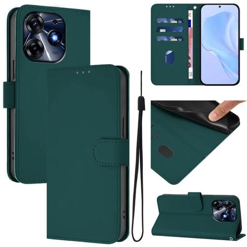 Funda de Piel para Tecno Spark 10 Pro 4G con Textura Liso y Cordón (Verde Oscuro)
